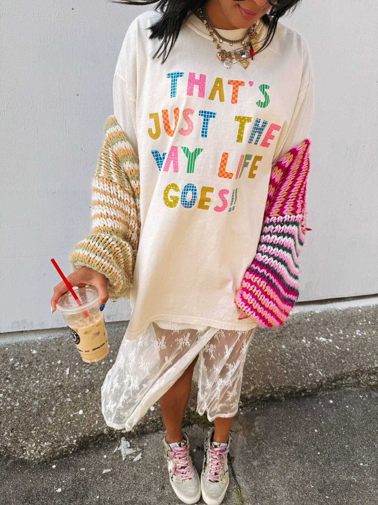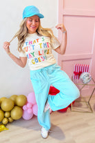 Embrace your vibe with this playful graphic tee from ETTA + EAST. Featuring bold, square letters in vibrant multi-color design against a crisp ivory base, it's the perfect way to express yourself with a smile. The classic crewneck and short sleeves make it effortlessly wearable for any occasion—whether you're keeping it casual or dressing it up. A fun, feel-good piece that celebrates the lighter side of life.