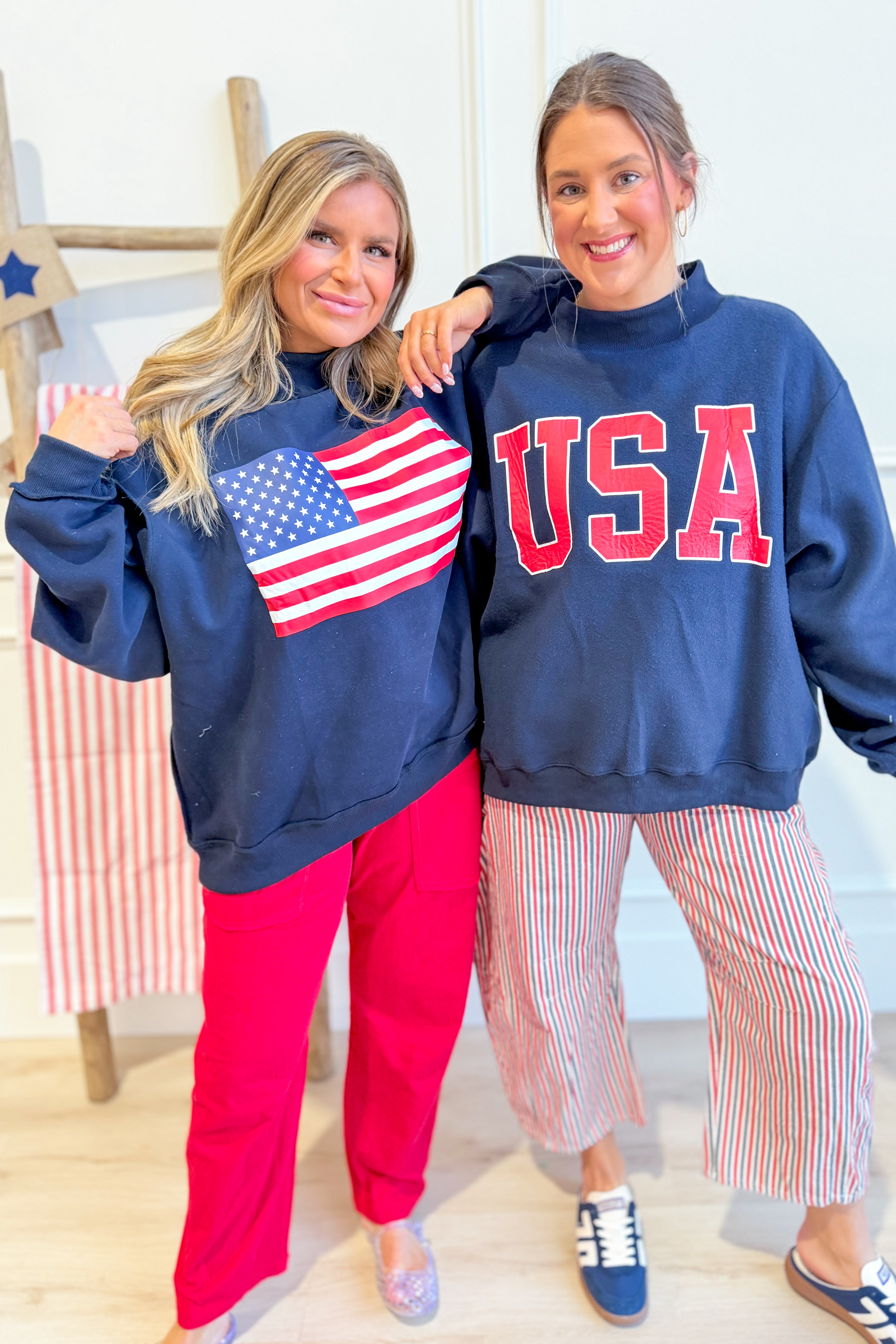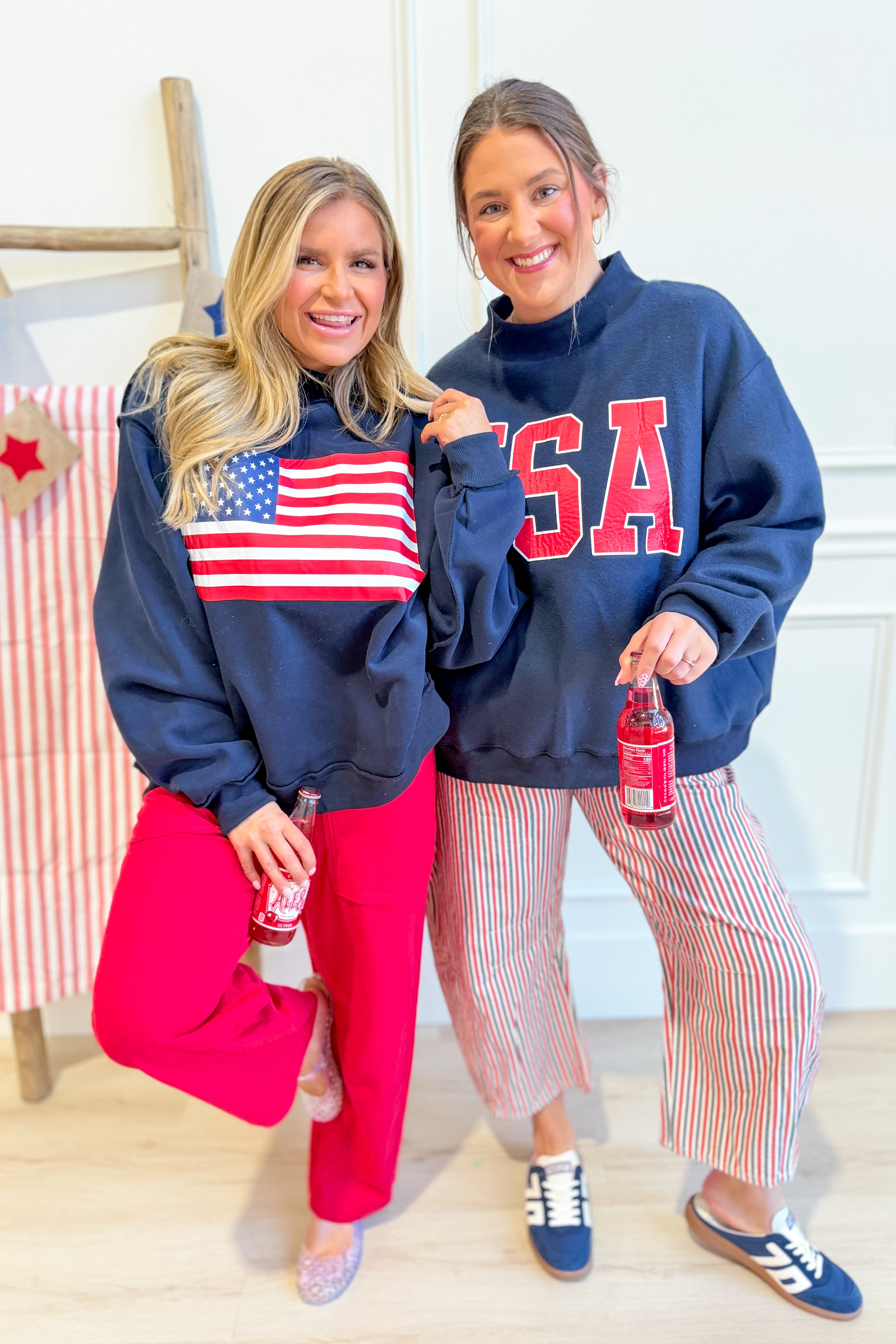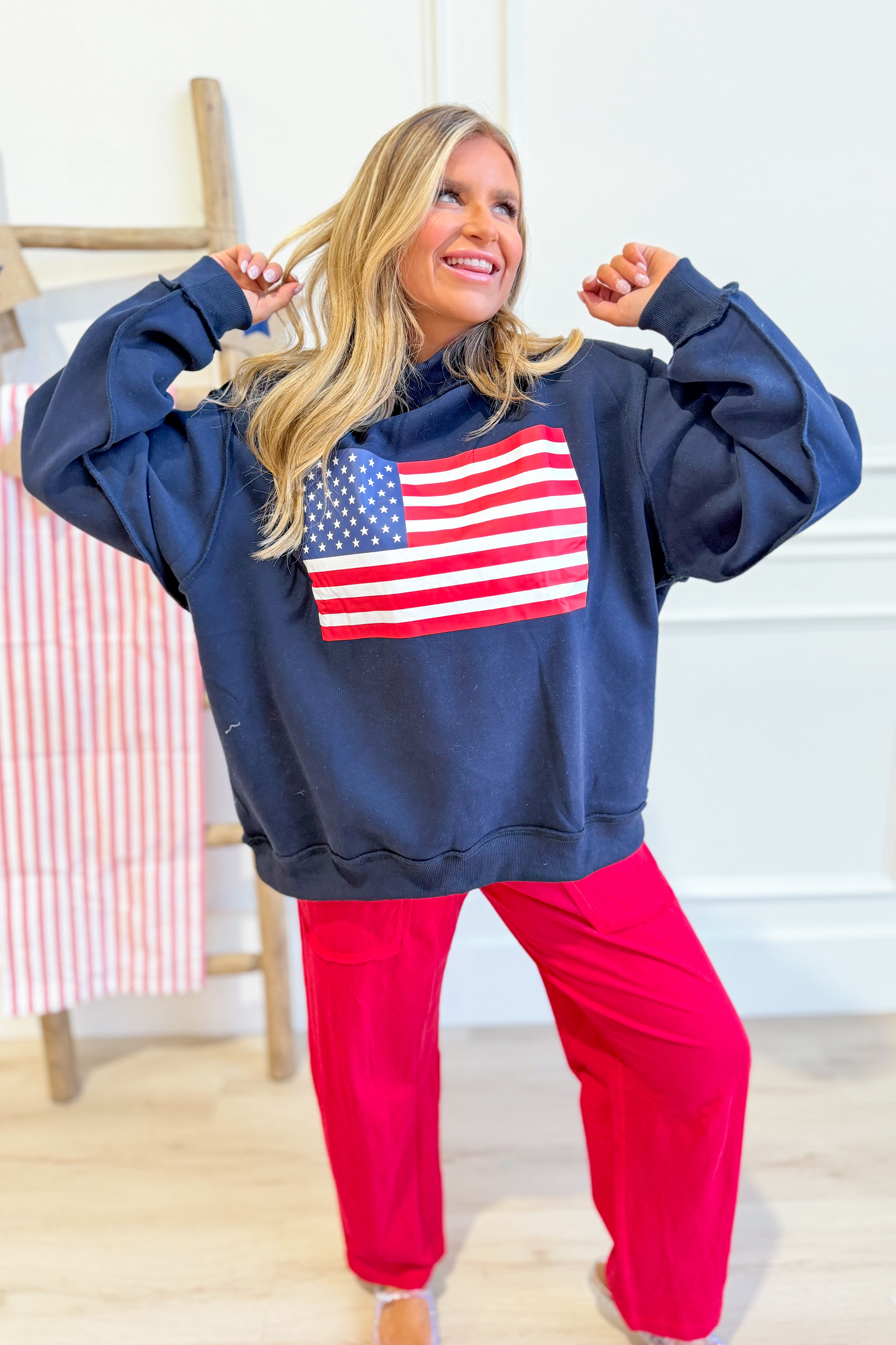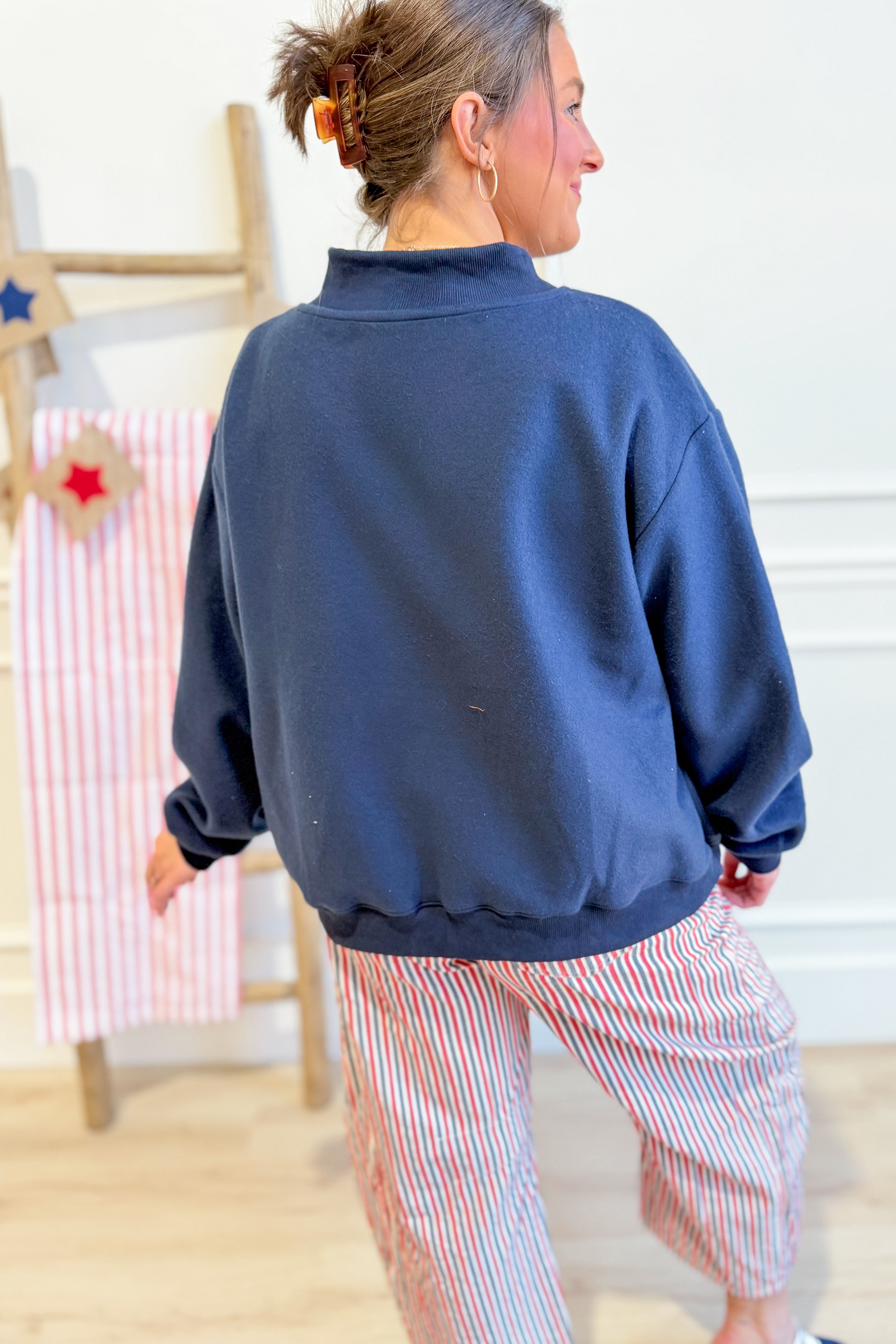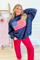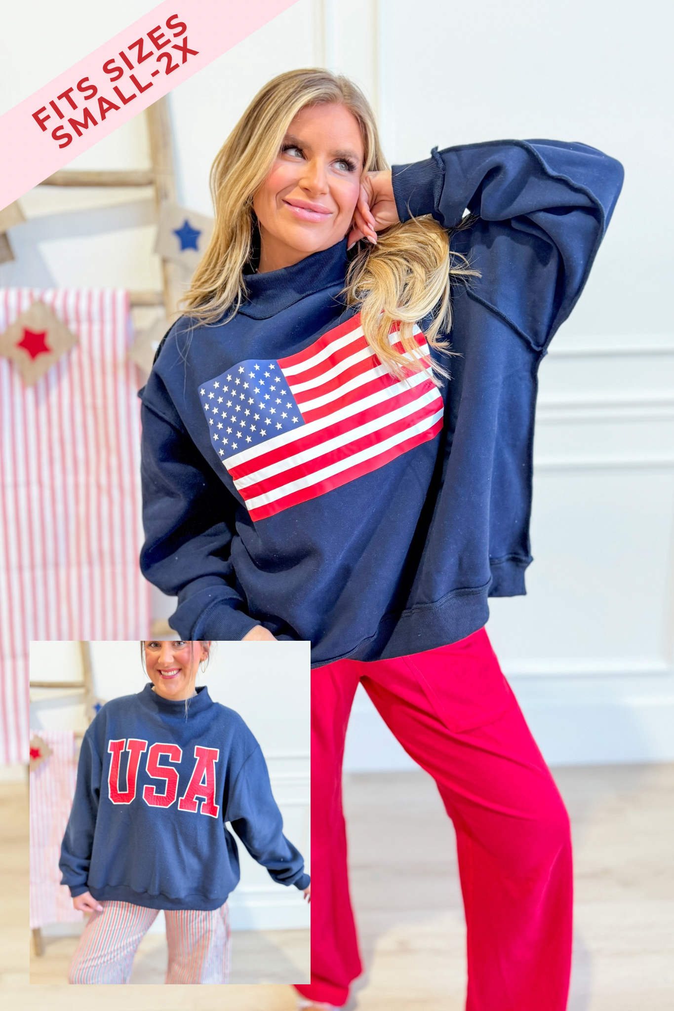 Show your patriotic spirit with the Bucketlist USA and Flag Reversible Mock Neck Sweatshirt. This oversized pullover flips between two bold designs, so you get double the style in one cozy piece. The mock neck adds a modern touch while the relaxed fit keeps things comfortable all day long. Perfect for casual outings, game days, or whenever you want to celebrate in style. Layer it, wear it solo—this versatile sweatshirt is ready for whatever's on your agenda.