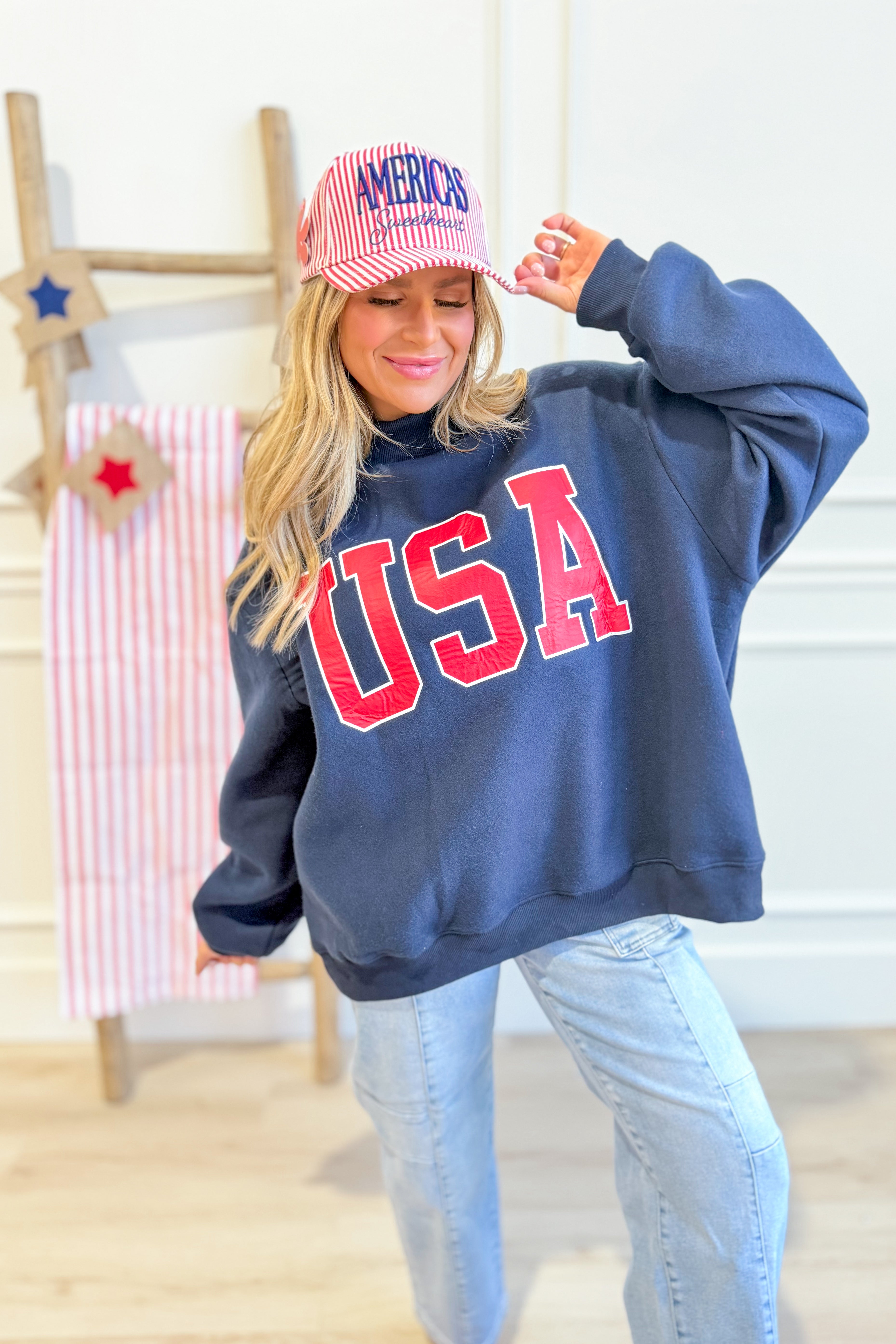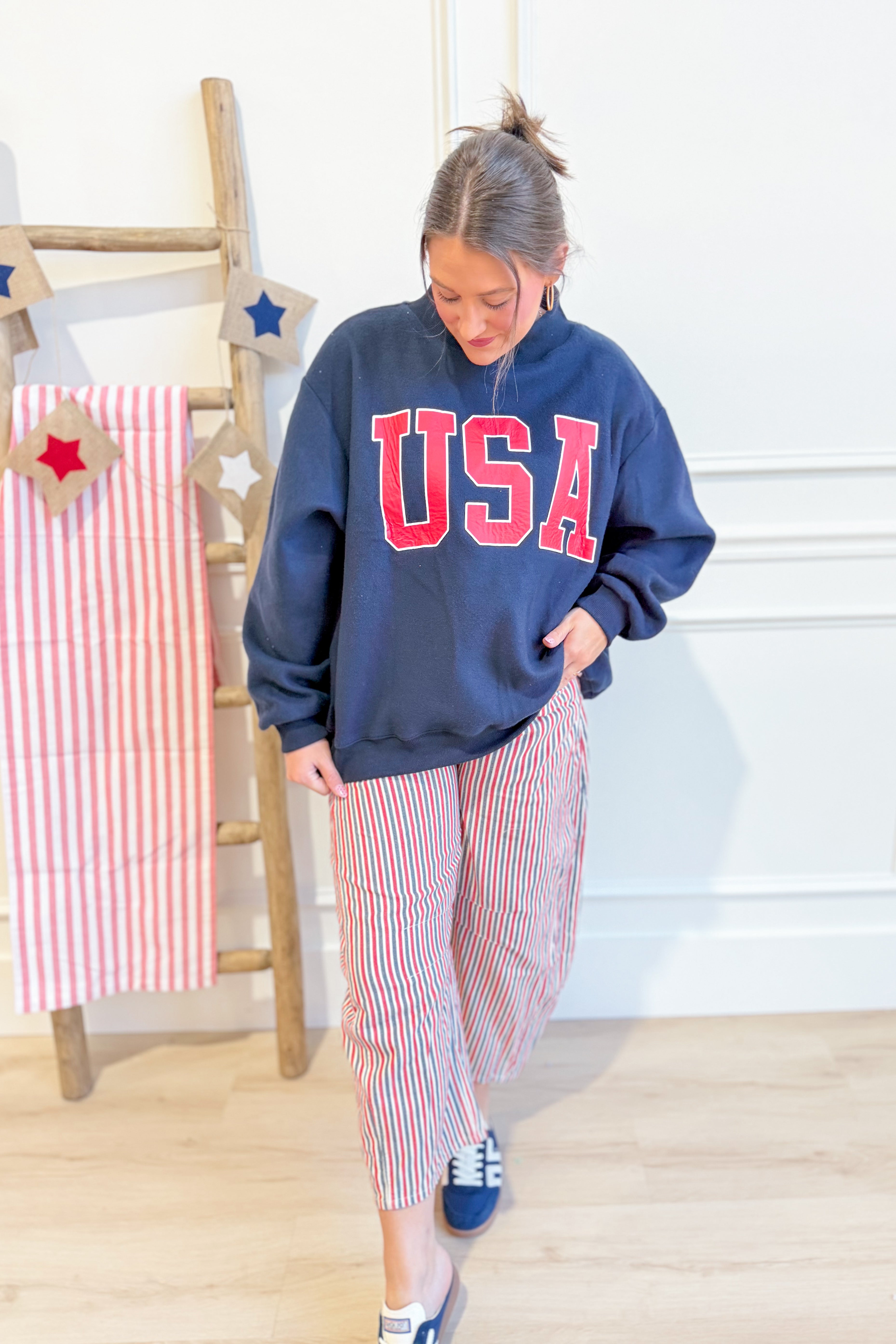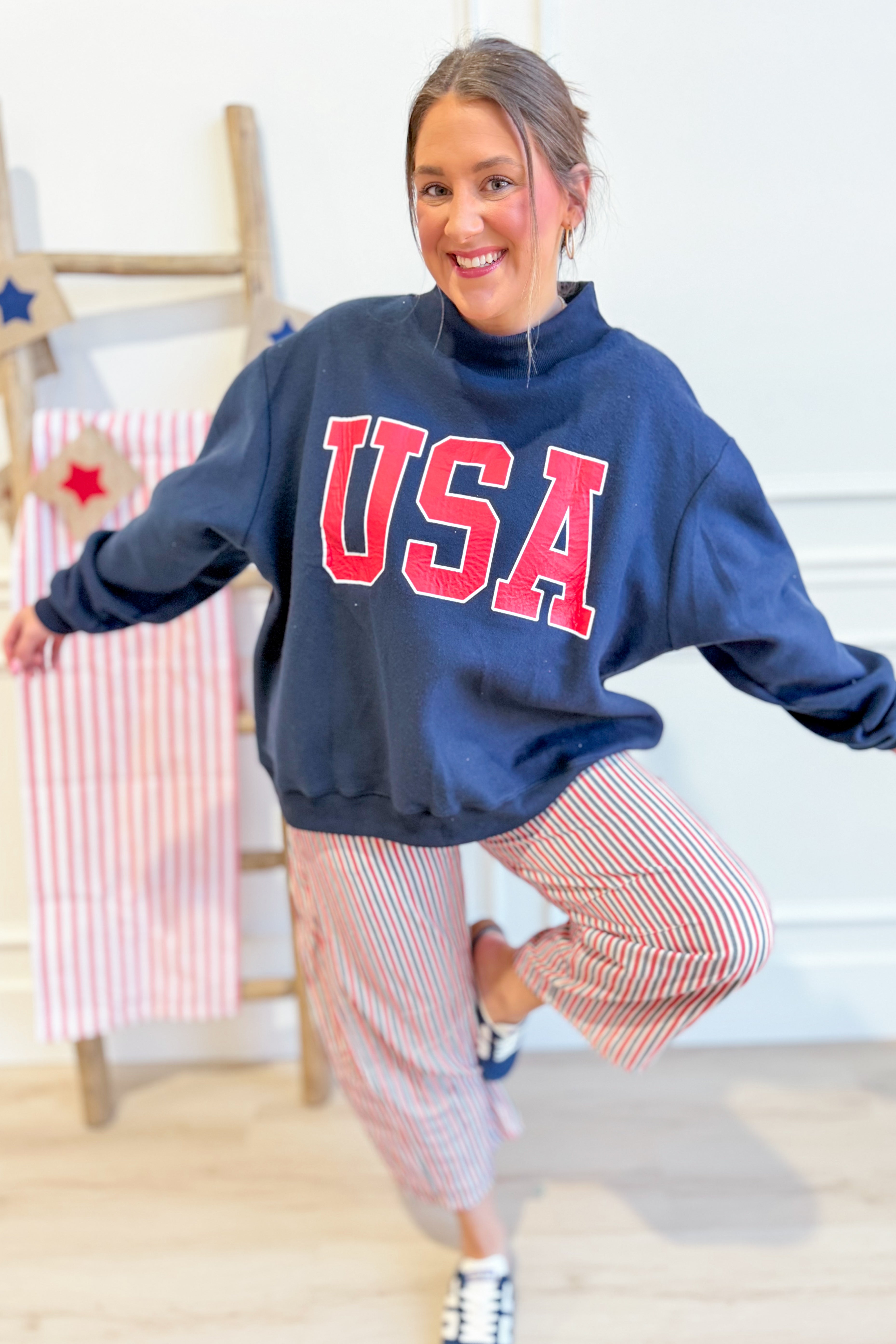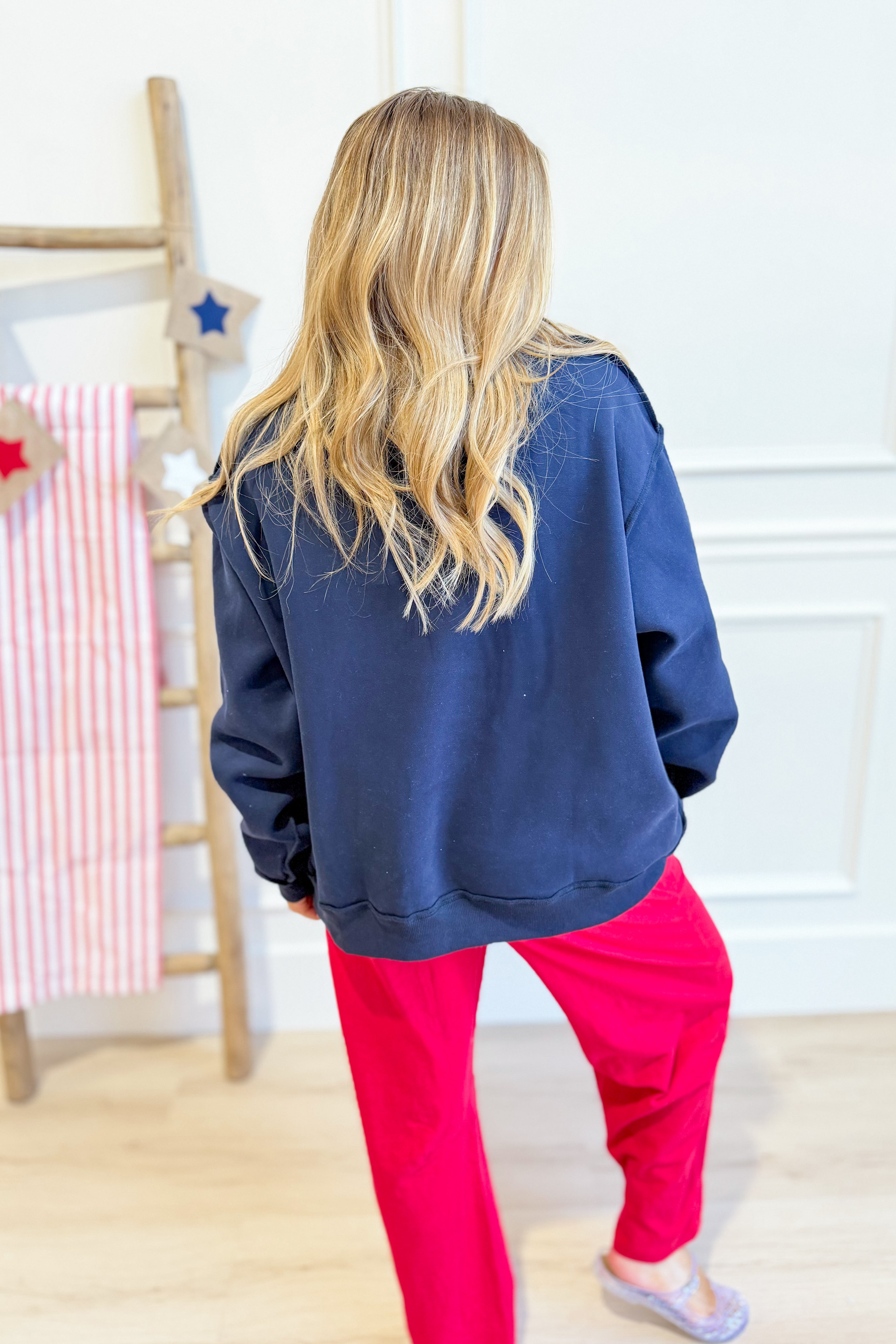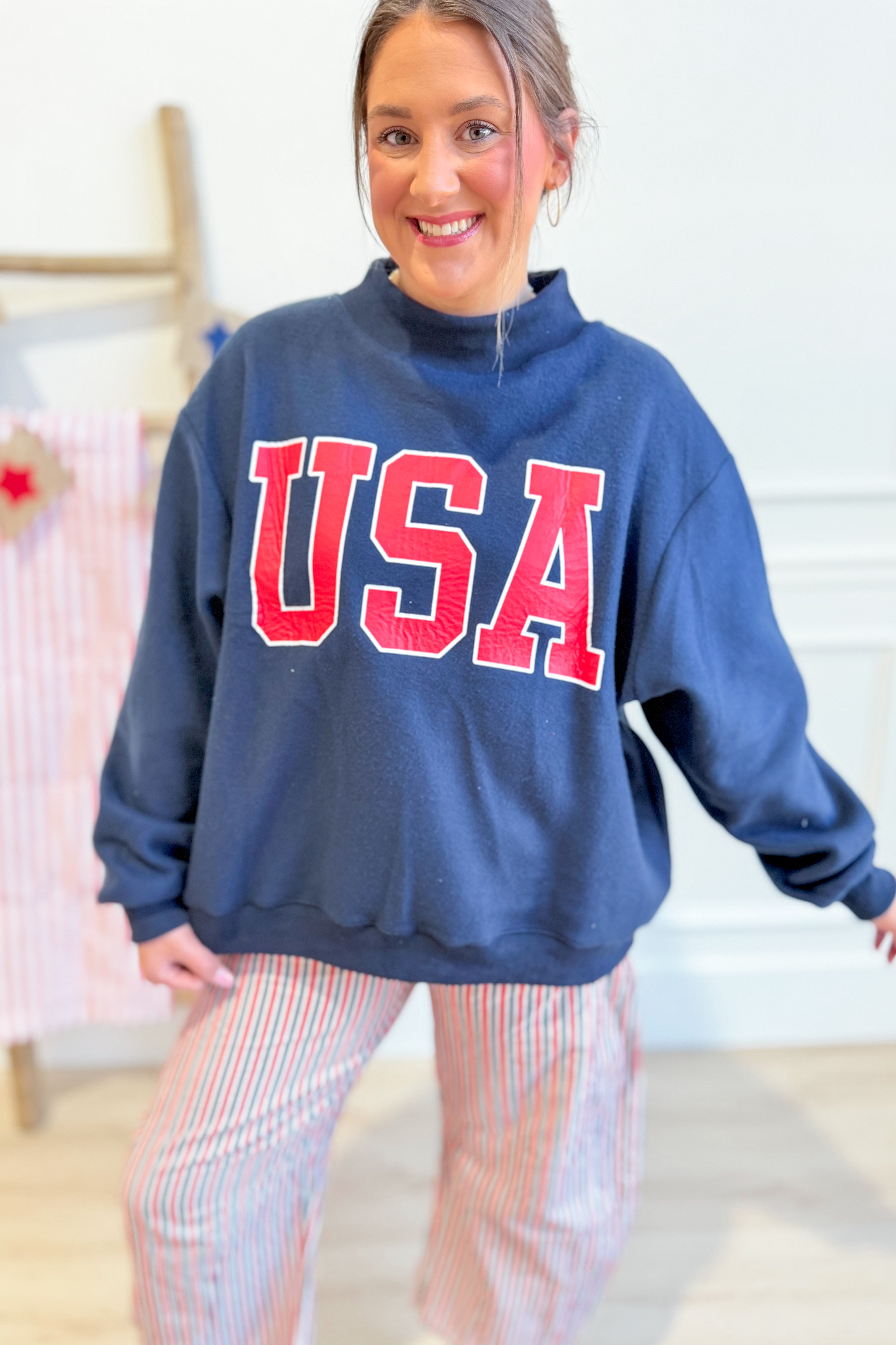 Show your patriotic spirit with the Bucketlist USA and Flag Reversible Mock Neck Sweatshirt. This oversized pullover flips between two bold designs, so you get double the style in one cozy piece. The mock neck adds a modern touch while the relaxed fit keeps things comfortable all day long. Perfect for casual outings, game days, or whenever you want to celebrate in style. Layer it, wear it solo—this versatile sweatshirt is ready for whatever's on your agenda.