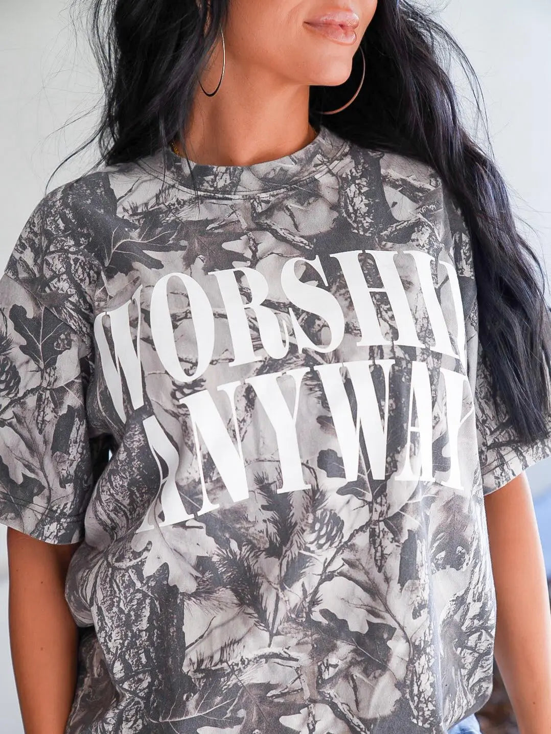 Make a bold statement with this playful camo tee that blends edgy style with meaningful vibes. Featuring eye-catching block lettering across a classic crewneck, this short-sleeve shirt rocks a trendy camo pattern that works for any occasion. Printed with premium DTF technology for durability that lasts, it's the perfect piece to express yourself with attitude and authenticity.